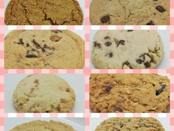 Ginger, Chocolate Chip, Caramel Choc Chunk, Choc. Chip Shortbread, Toffee Shortbread, Cranberry Oat Walnut, Peanut Butter, Oatmeal Raisin